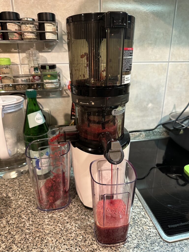 Da wir ein Zwei-Personen-Haushalt sind, reichte mir der 2 000 ml-Behälter völlig aus. Der nächstgrößere – Kuvings AUTO10 S – bietet zusätzlich eine integrierte Schneide- und Smoothie-Funktion, die ich allerdings nicht unbedingt brauchte.